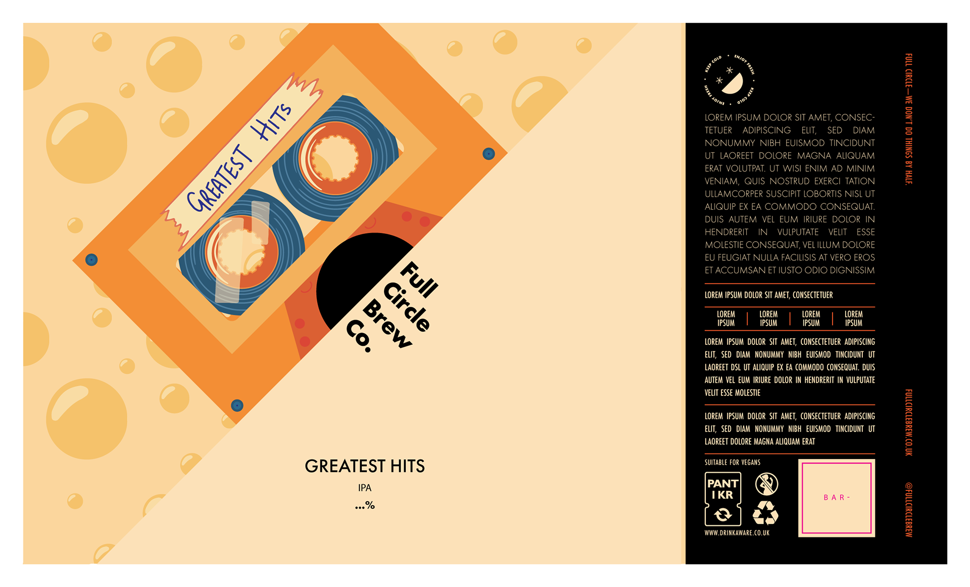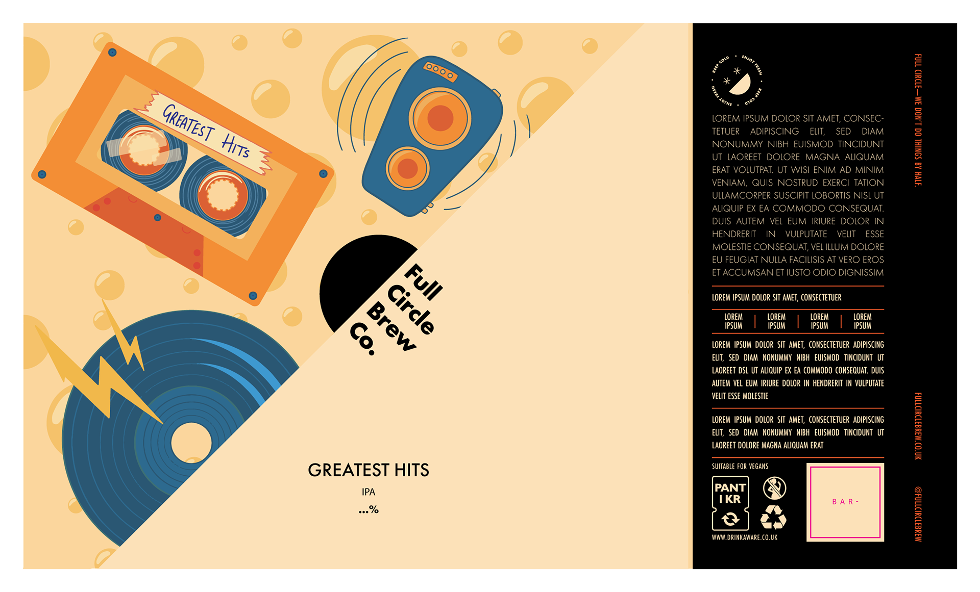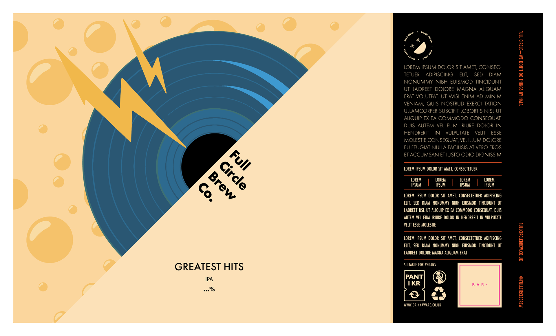 A collection of beer can designs and accompanying graphics for a brief given by Full Circle Brewery to the students of the University of Sunderland